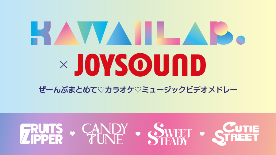 「FRUITS ZIPPER」「CANDY TUNE」「SWEET STEADY」「CUTIE STREET」KAWAII LAB.全グループのミュージックビデオそのままを、カラオケの色変わりテロップつきのメドレーで配信♡