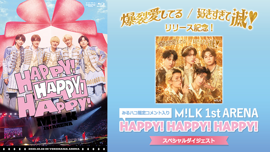 2023年10月に横浜アリーナで開催された、『M!LK 1st ARENA "HAPPY! HAPPY! HAPPY!"』の中から厳選した全6曲と、みるハコでしか観れない撮りおろしのスペシャルコメントを収録したダイジェスト映像を期間限定配信!